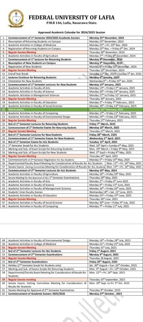 The Lagos State University (LASU) has officially released the approved academic calendar for the 2025/2026 academic session, following executive approval...